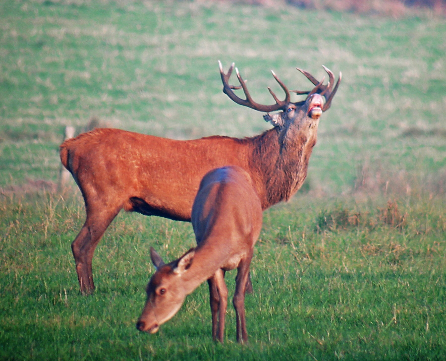 À cette saison, le cerf est en rut et les forêts s’emplissent des cris impressionnants du brame. Parfois, éclate le fracas des ramures qui s’entrechoquent.