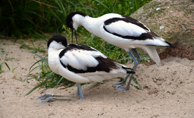 Les parades nuptiales des Avocettes sont longues et charmantes : Madame incline la tête au ras de l’eau tandis que Monsieur fait sa toilette à côté d’elle ; il passe derrière sa compagne et recommence de l’autre côté. Il répète ce manège plusieurs fois tandis que la femelle reste immobile, avant de s’accoupler avec elle, ailes ouvertes. À la fin de l’accouplement, Monsieur et Madame courent quelques pas côte à côte en se tenant par le bec, l’aile du mâle couvrant le dos de la femelle, avant de se séparer ! Le couple reste uni, répète les accouplements et procède à des séances de toilettes côte à côte.